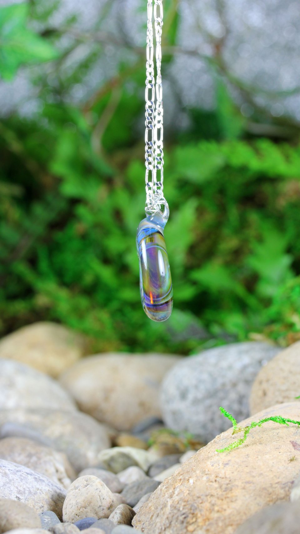 Iridescent Light Lampwork Pendant // Boro/Borosilicate Glass Necklace // Rainbow, Light-Catcher, Purples, Blues, Sterling Silver // Z1101